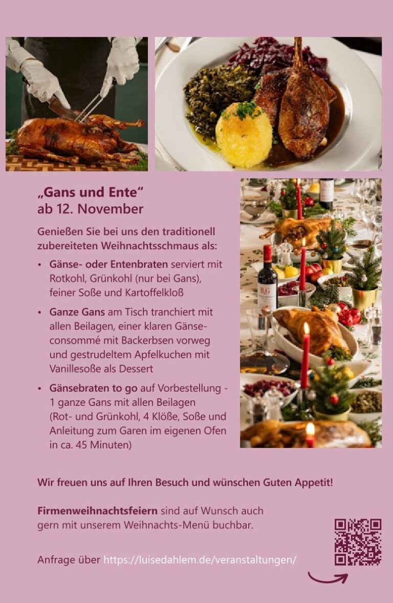 Roast goose with red cabbage, kale, potato dumpling and fine goose gravy for €14.14 – only bookable via www.luisedahlem.de/reservierung